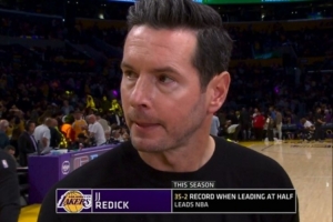 转播方在中场时晒出数据,本赛季湖人半场领先时,战绩高达35胜2负。